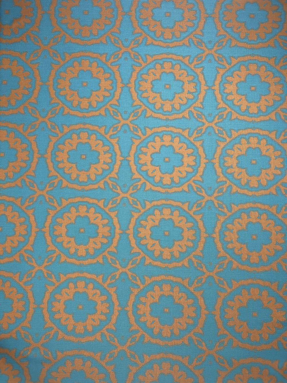 Jacquard jersey di misto poliestere con decori floreali blu ceruleo e marrone cammello o bianco e nero.