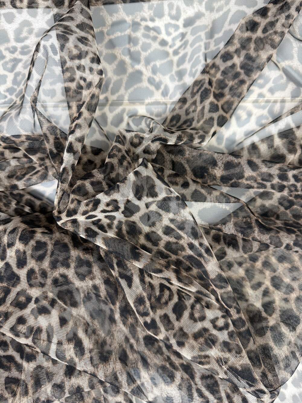 Aggiungi un tocco selvaggio e audace alle tue creazioni con il nostro tulle in poliestere con stampa leopardata. Questo tessuto leggero e trasparente è perfetto per realizzare sovrapposizioni, velature e dettagli sensuali per abiti da sera, o da ballo, per accessori di tendenza come sciarpe, foulard e copricapo per un tocco di grinta.