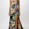 Satin di poliestere stampato con motivo floreale.